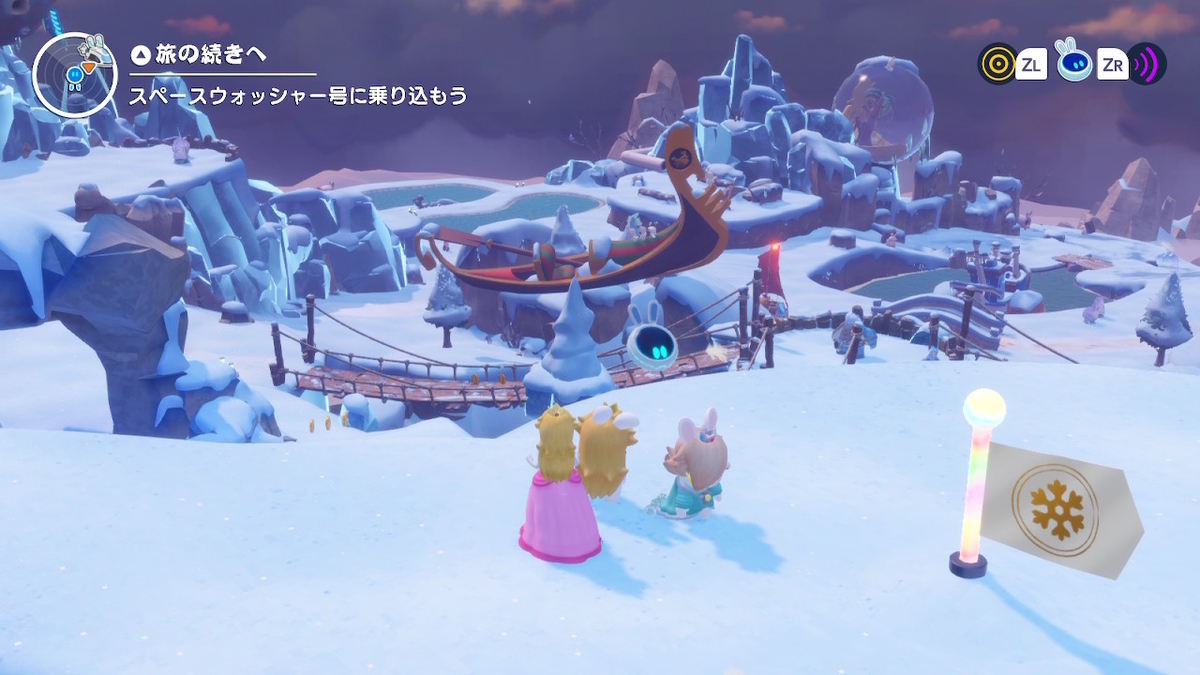 今作の注目ポイントはボイスが付いたことですね。マリオたちはいつも通りしゃべりませんが、ラビッツ組とピーポ&ジーニーがとにかく喋る喋るので、前作とはまたちょっと違う雰囲気を味わえます。