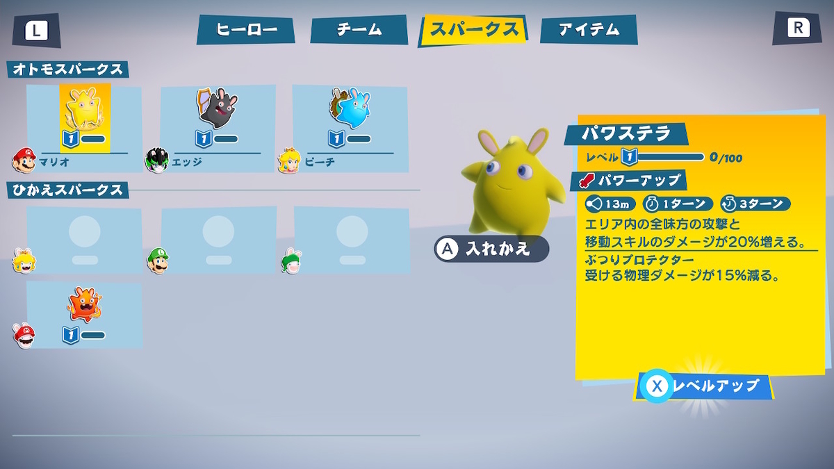 後はですね、もう一つの成長システムであるスパークス。