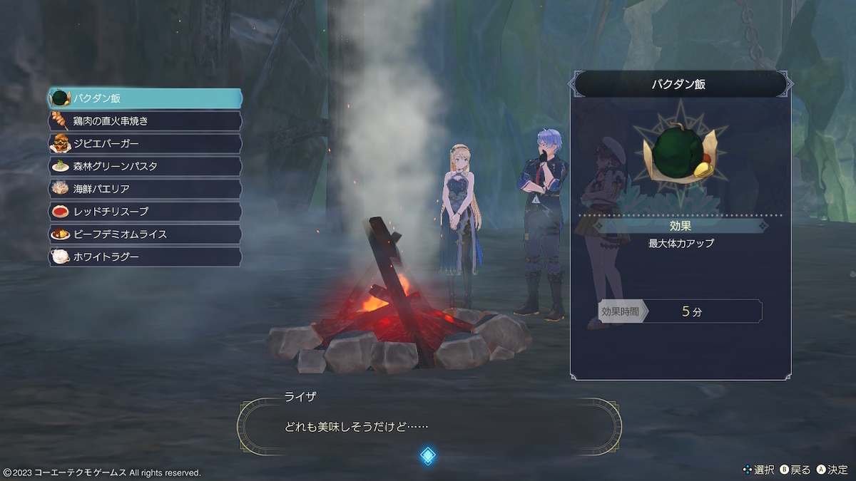 例えば各地に用意されているキャンプシステムは、体力の回復や料理が出来るようですが、拠点式のアトリエシステムとまるで噛み合っていないので使う機会はほぼありません。そもそも、かごの容量とかもあるので、探索し続けるのゲーム性的に無理なんだけど…。