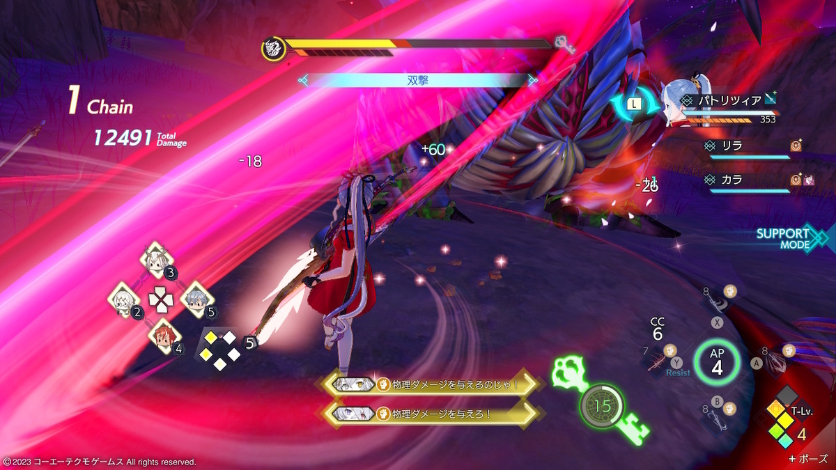 戦闘面でよいのが、単純に戦闘が爽快になること。通常攻撃を短い間隔で連続でたたき込みながらAPを貯め、スキルを使いまくって一気に敵のHPを削っていくことが出来るので、かなり気持ちいいんですよ。