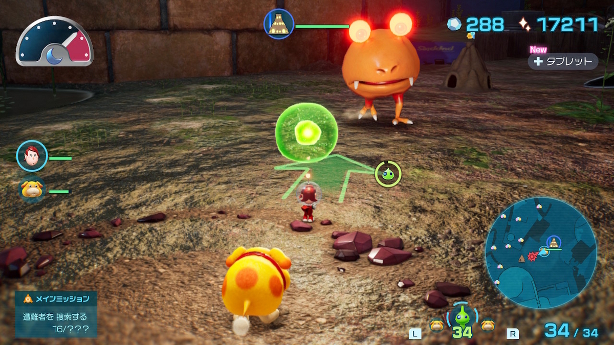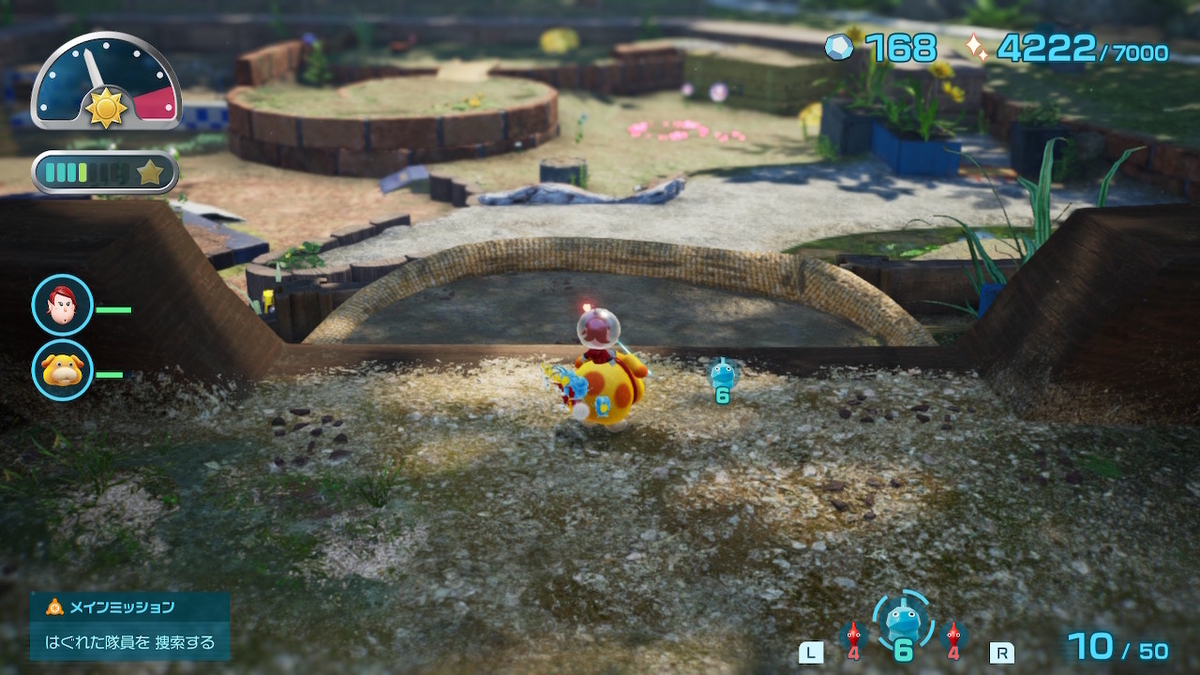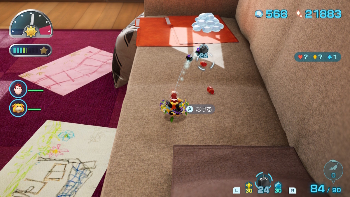 本作、前述した通りピクミン1や3のように、通常の地上探索に時間制限要素がないため、かなり緩く遊ぶことが出来るようになっているんですよ。マップにある洞窟に至ってはどんなに遊んでも時間経過が一定なので、時間を気にする必要がほとんどありません。