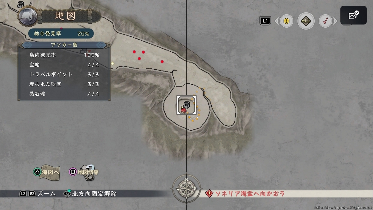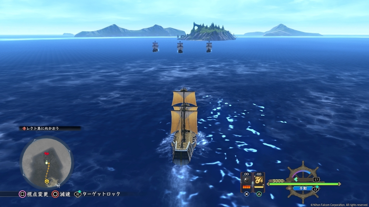 フィールドのコンパクトさも遊ぶ進めていくと印象が変わってきました。本作、大海原に散らばっている島々を渡り歩いて進めていくんですけど、メインで進めていく島以外は結構サクサク遊び進めることが出来ます。