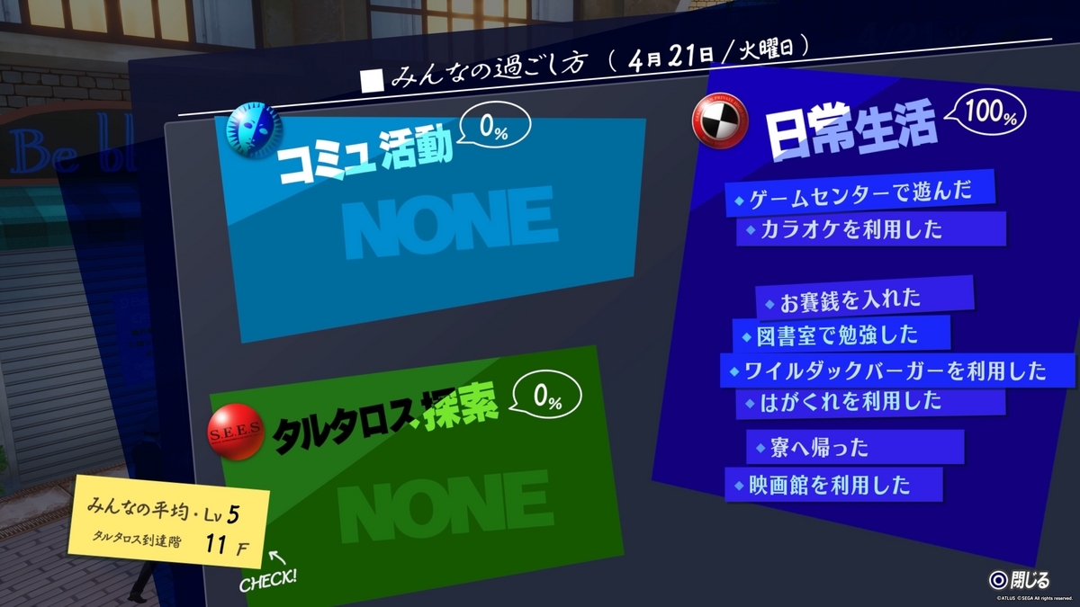 オリジナル版であった体調のような要素が廃止されたので、一気にタルタロスを進められるようになった分、自由時間もかなり増えましたし、ステータスやコミュレベルも上げやすくなっています。